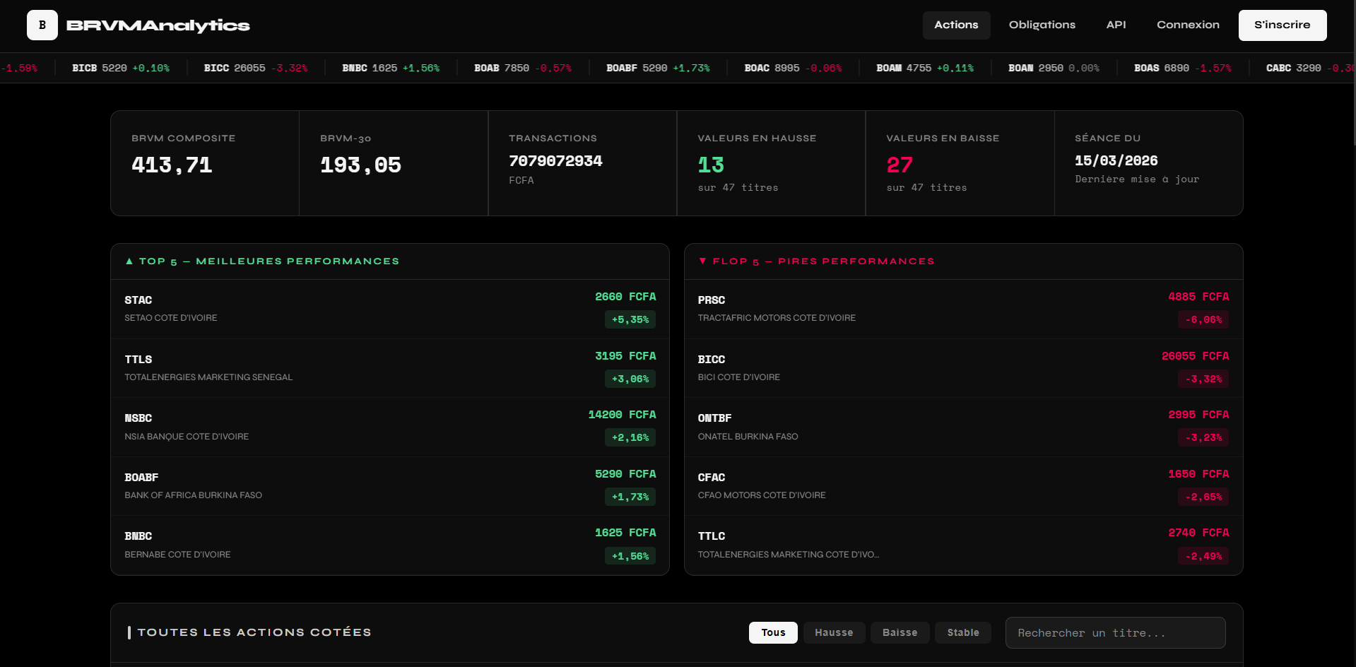 Plateforme de données boursières en temps réel pour la BRVM (Bourse Régionale des Valeurs Mobilières de l'UEMOA)